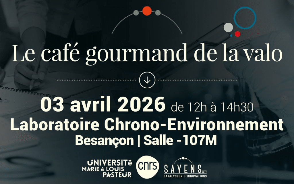 Participez au café gourmand organisé par la SATT SAYENS et la Direction de la Recherche, de la Valorisation et de l'Innovation de l'université Marie et Louis PASTEUR le Vendredi 03 Avril 2026 de 12h00 à 14h30.