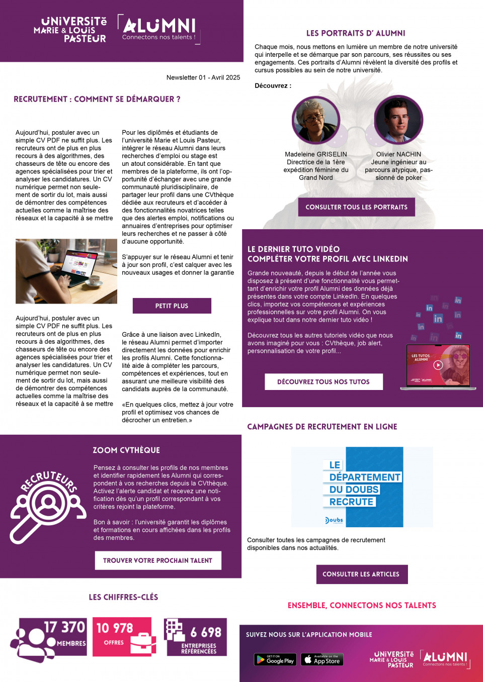 Nous sommes heureux de vous annoncer la publication de la toute première newsletter du réseau Alumni de l’université Marie et Louis Pasteur.