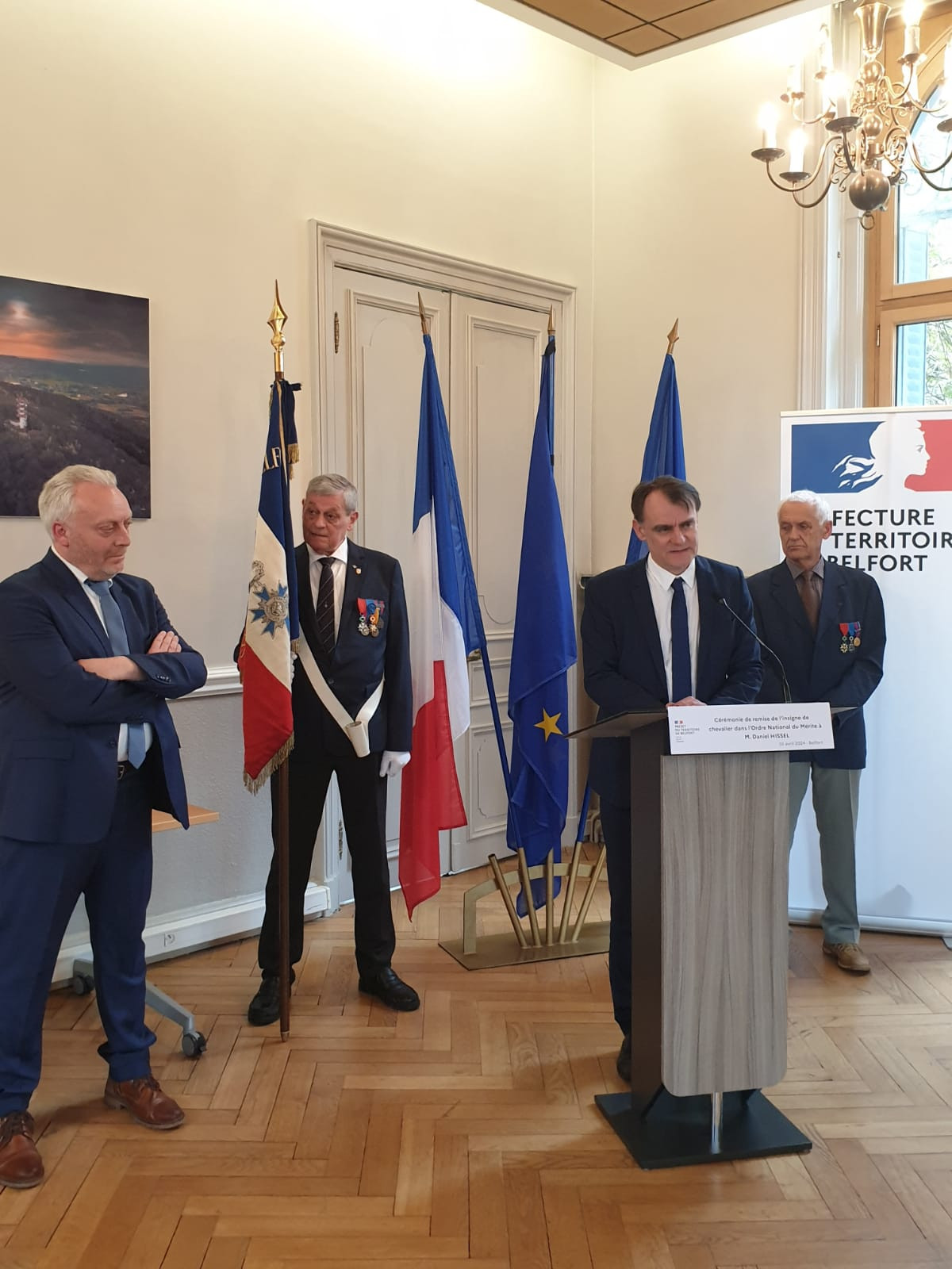 Daniel HISSEL, vice-président de l'université de Franche Comté, reçoit l’insigne du chevalier de l’ordre national du Mérite.