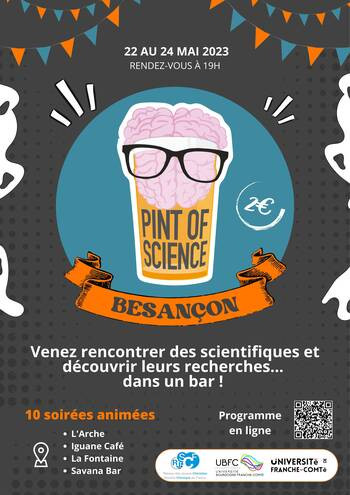 Du 22 au 24 mai 2023, rendez-vous dans 4 bars de Besançon avec les chercheurs de l'université de Franche-Comté .