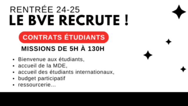 Le BVE recrute des étudiants pour l’année scolaire 2024/2025