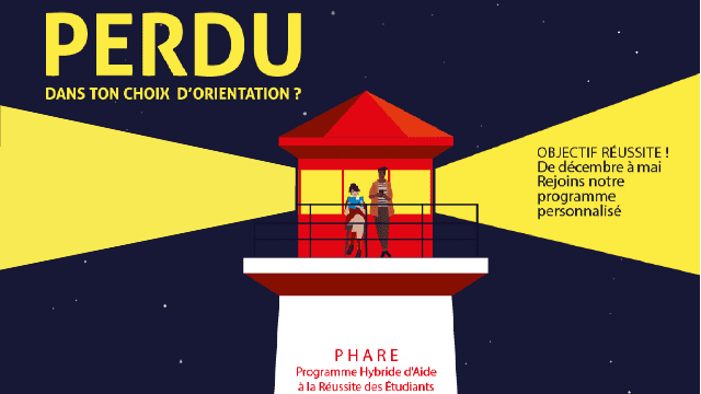 L’accompagnement PHARE s’adresse aux étudiants de licence, principalement en première année à l’université de Franche-Comté. Il répond à ceux qui se sentent perdus dans leurs études et qui veulent repenser leur projet d’études pour trouver une voie qui leur ressemble plus. Phare c’est un accompagnement personnalisé qui laisse le temps à l’étudiant de mieux se connaitre, de construire des pistes solides pour se réorienter et retrouver le sentiment de réussite.