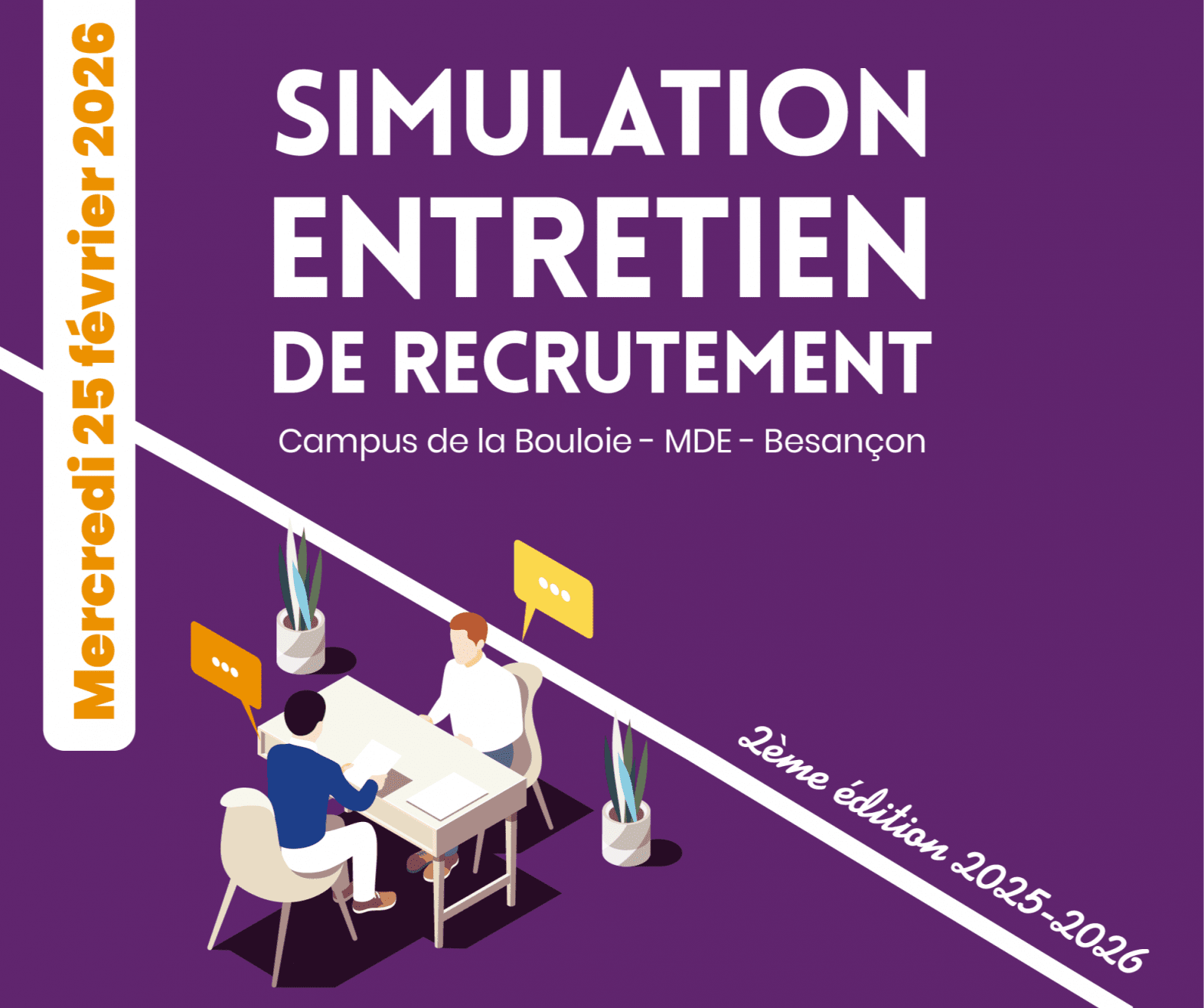 Il reste quelques places pour la journée de simulation aux entretiens prévue le 25 février (Maison des étudiants à Besançon), les inscriptions sont possibles jusqu'au 17 février.