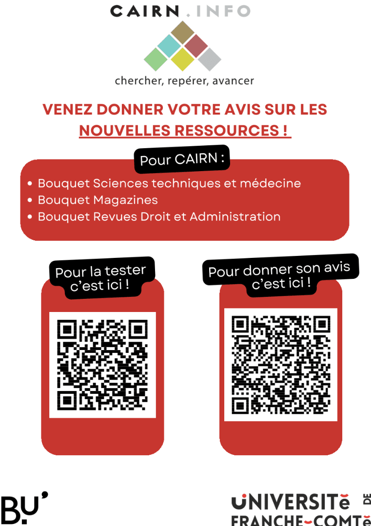 Dès maintenant et jusqu’au 30 Décembre, devenez testeur en découvrant les nouvelles ressources de Cairn Info dans les Bibliothèques Universitaires.