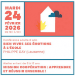 Conférences & ateliers simultanés autour des sciences pour l’éducation.Philippe Gay (Lausanne), Maitre de conférence en psychologie de l’éducation Haute école pédagogique de Vaud - Suisse animera la conférence : Bien vivre ses émotions à l'école.Cette conférence propose différentes pistes pour développer les...