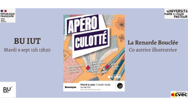En collaboration avec le CROUS Bourgogne Franche-Comté, un apéro culottés est proposés à la BU de l'IUT Besançon-Vesoul.