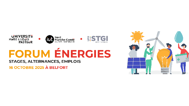 L’UFR STGI et l’iUT Nord Franche-Comté organisent le Forum Énergie, le 16 octobre 2025 à Belfort. Au programme : rencontre étudiants-entreprises autour des métiers des énergies thermique, électrique et renouvelable.